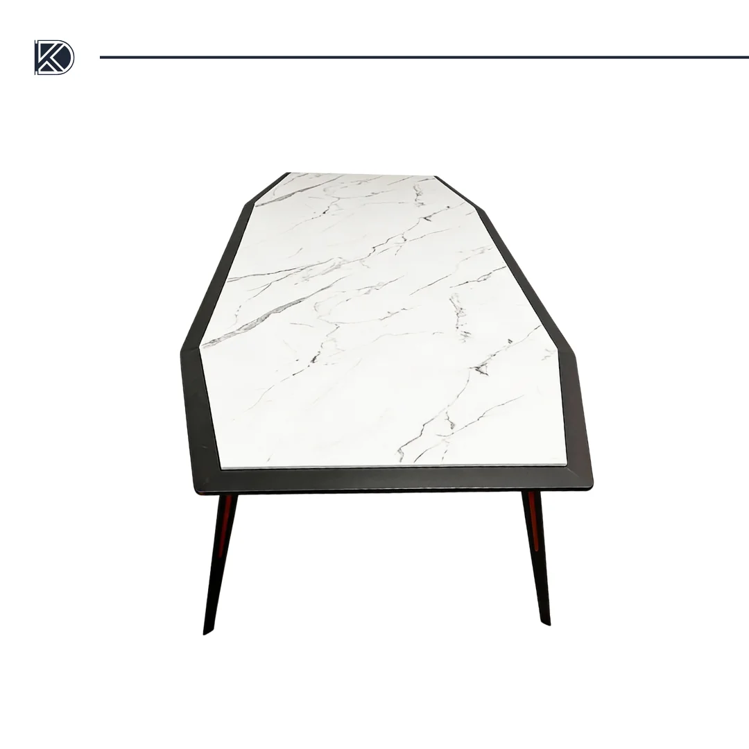 La table design géométrique en imitation marbre blanc modèle 107 se distingue par ses lignes audacieuses et son style contemporain, apportant une touche sophistiquée à votre intérieur.